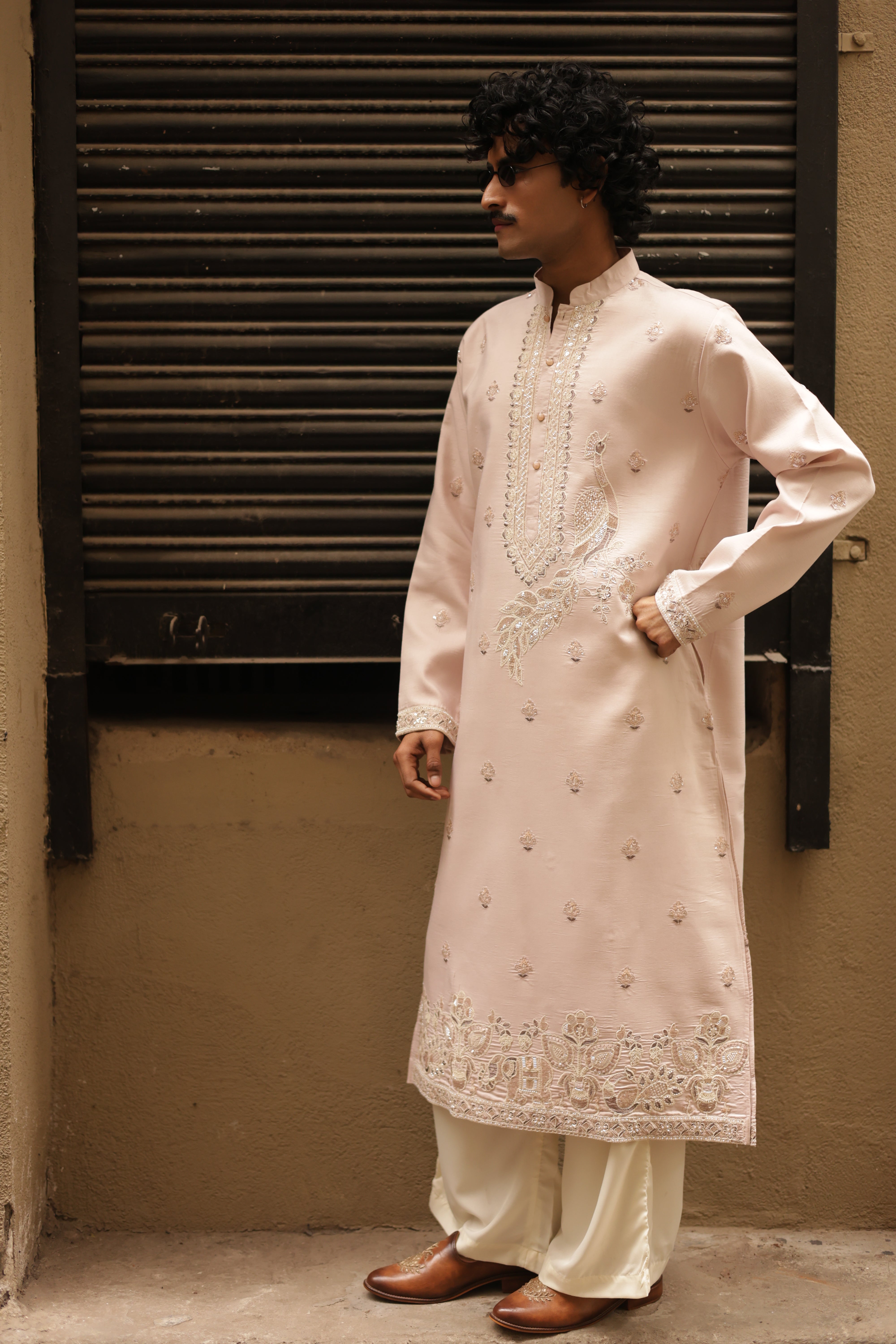 Auto Wala Hero is built for the big entry. Crafted in a soft beige tone with intricate embroidery across the neckline and hem, paired with bold confidence and city attitude, it’s made for wedding arrivals, baraat moments, and celebrations where the spotlight finds you naturally.