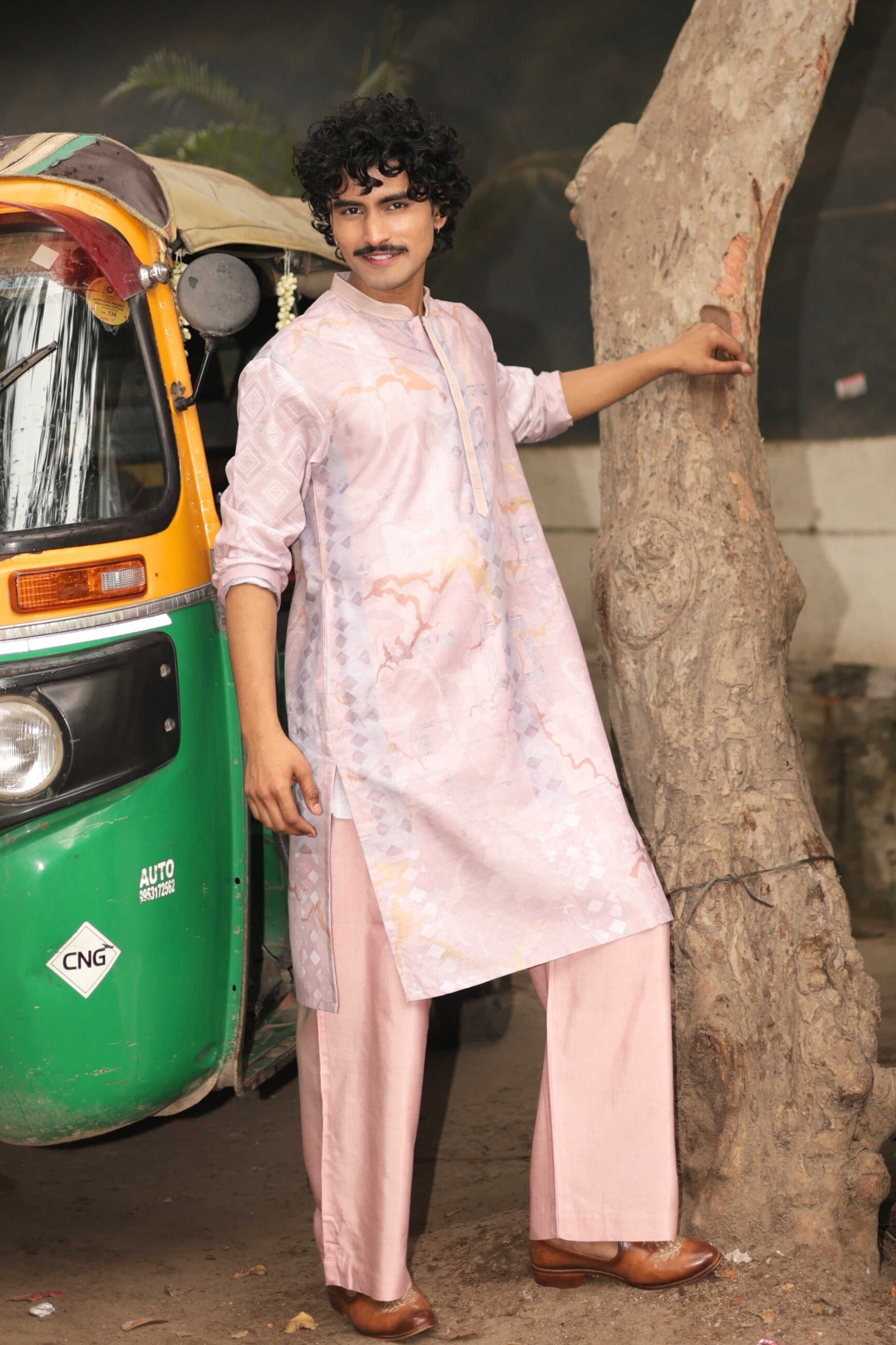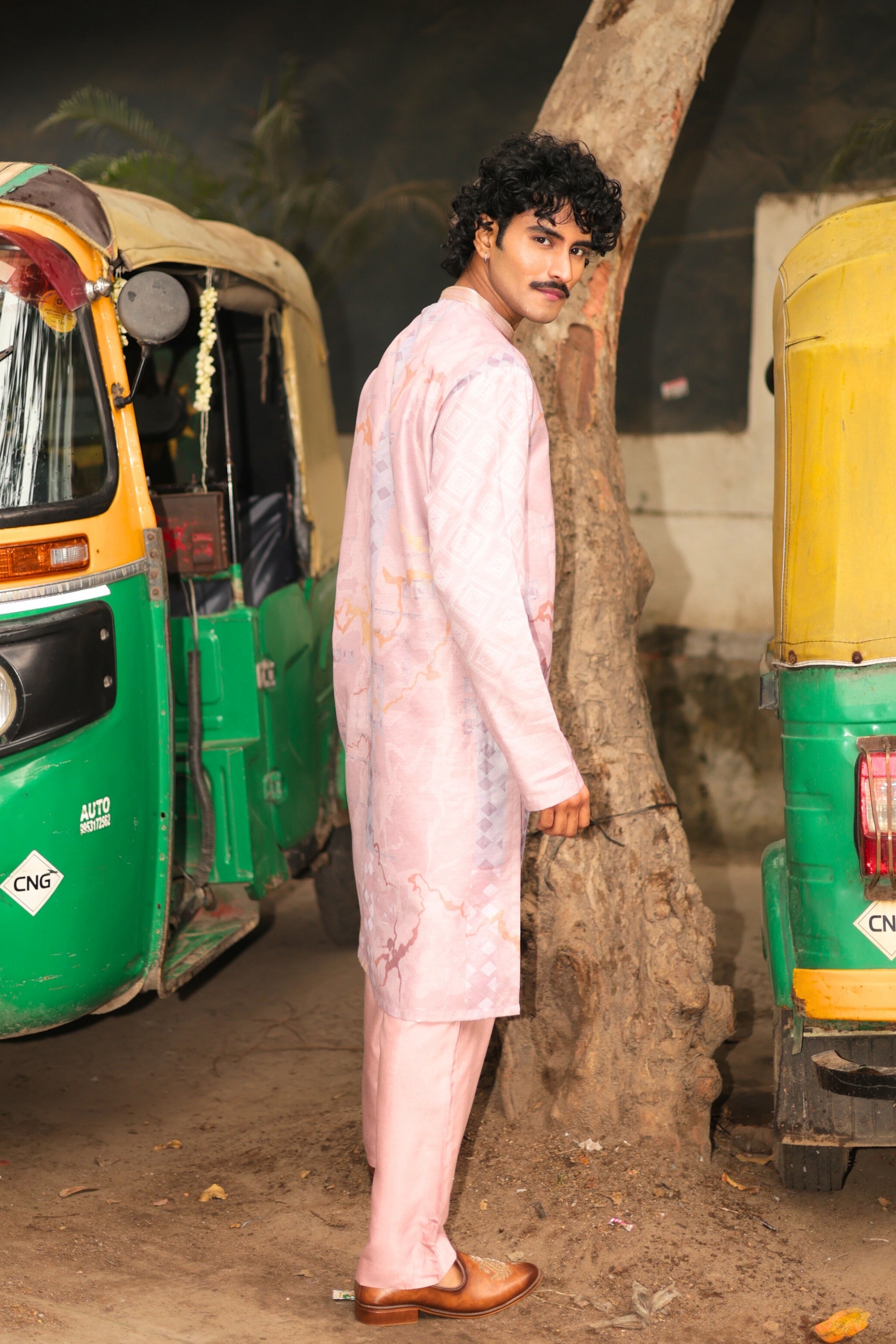 Gulabi Safar is a soft blush kurta crafted for effortless festive moments and unplanned city stories. Designed with a subtle tonal print and a relaxed silhouette, it perfectly balances romance with street confidence. Light, breathable, and quietly expressive, it’s made for the man who moves through every celebration with ease.